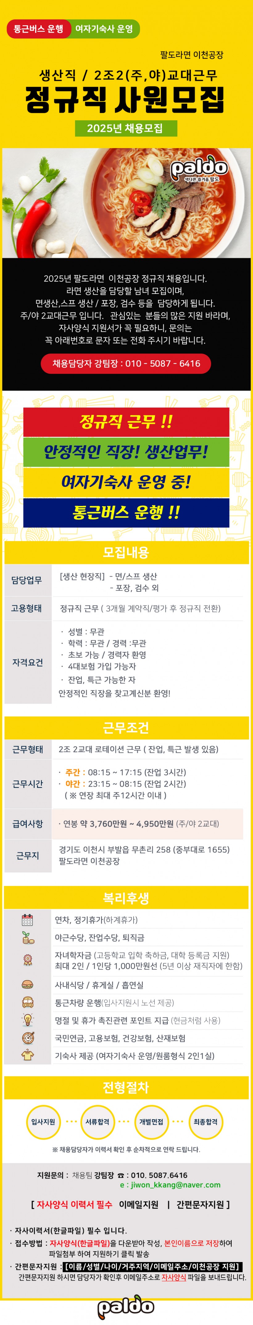 [경기도 이천] 생산직 남녀 채용모집 2025.04.28