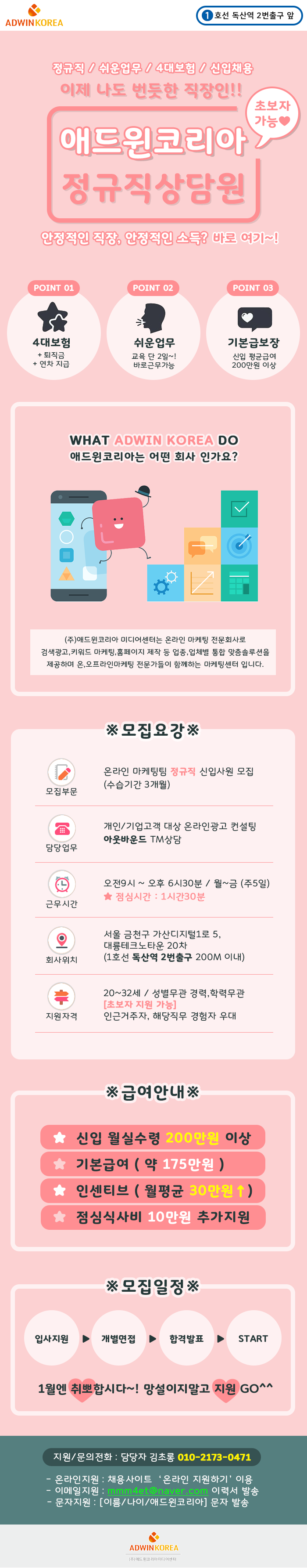 독산역 애드윈코리아 정규직 모집 > 전체채용