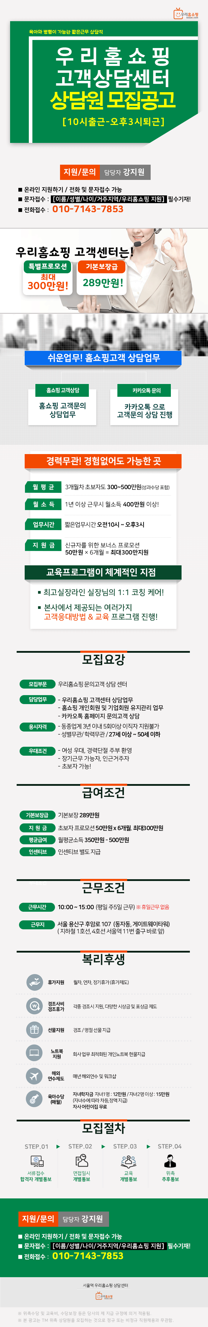 서울역 우리홈쇼핑 24F 고객상담센터 신입경력모집