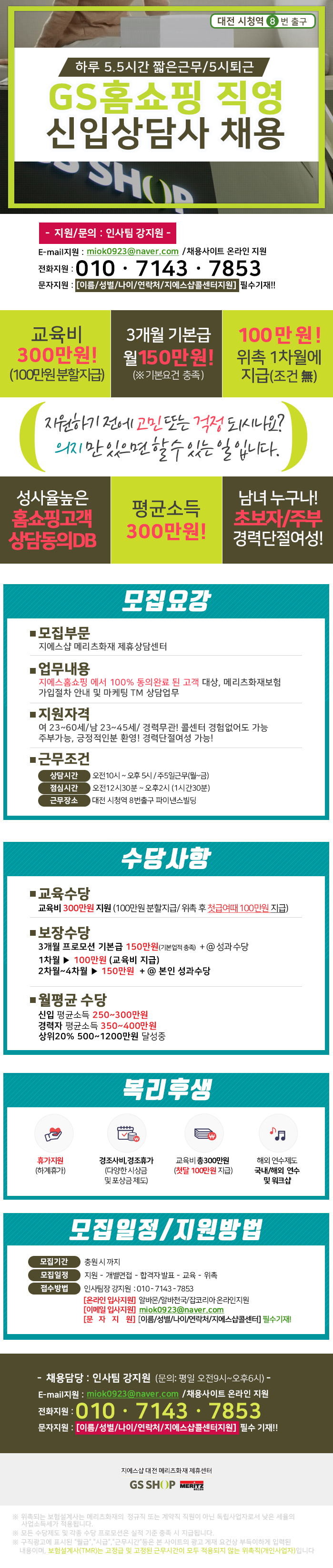 대전 시청역 GS홈쇼핑 신입TMR 모집