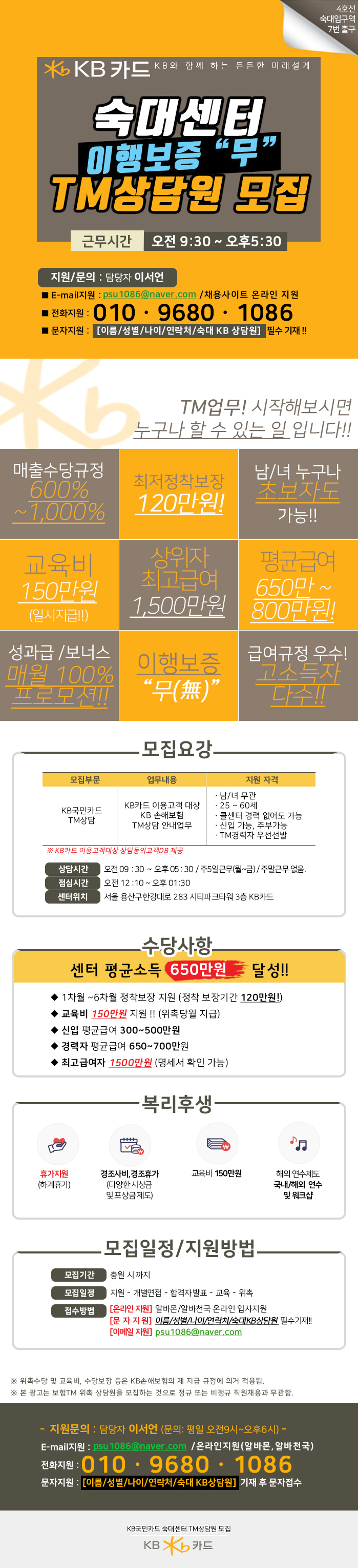 숙대입구역 KB국민카드 TM상담원모집