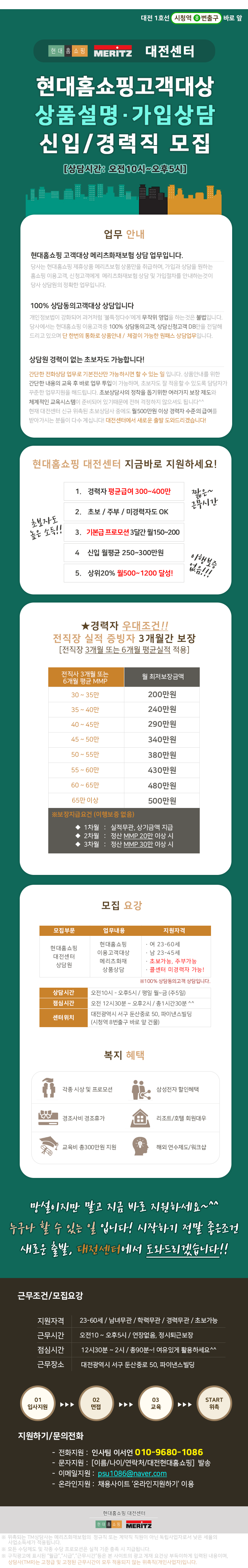 대전 현대홈쇼핑 메리츠보험 TM상담원모집