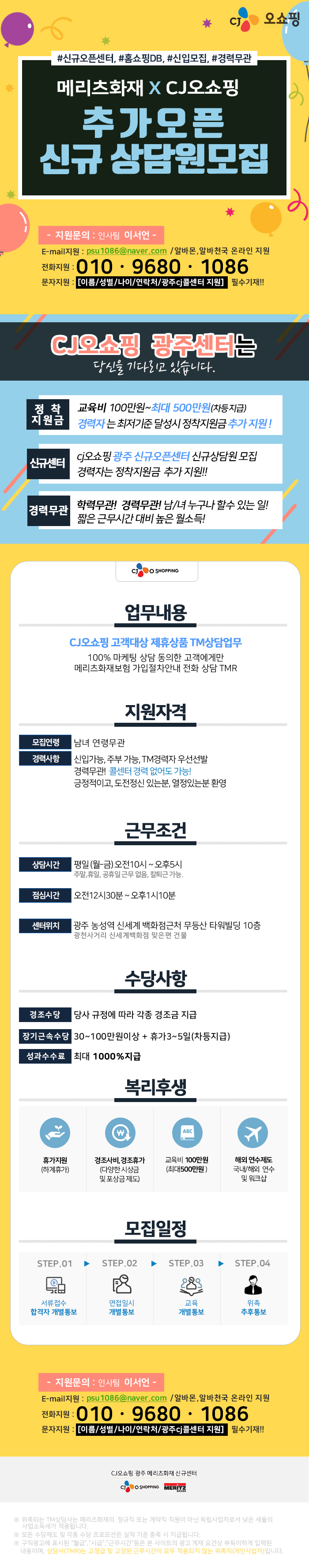 광주 CJ오쇼핑 메리츠화재 TM상담원 모집
