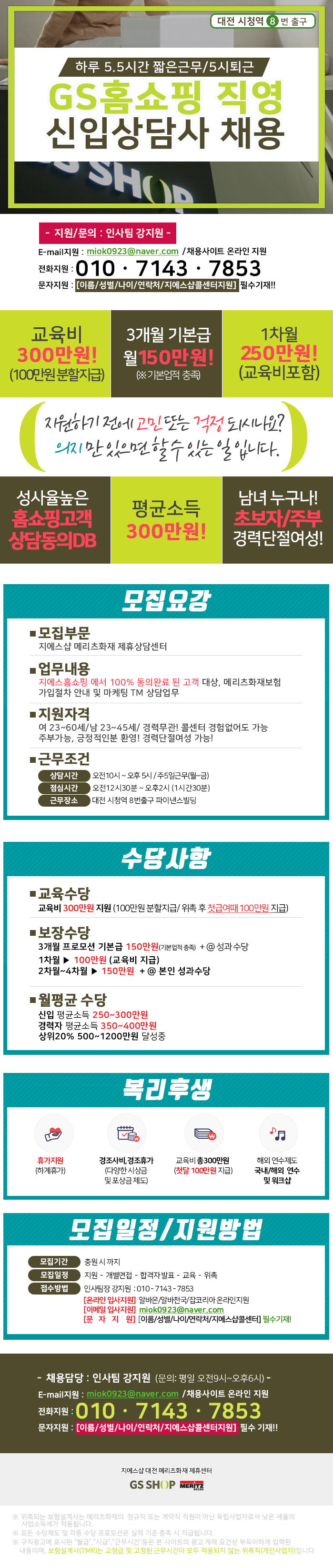 대전시청역 GS홈쇼핑 TMR 제휴상담원모집