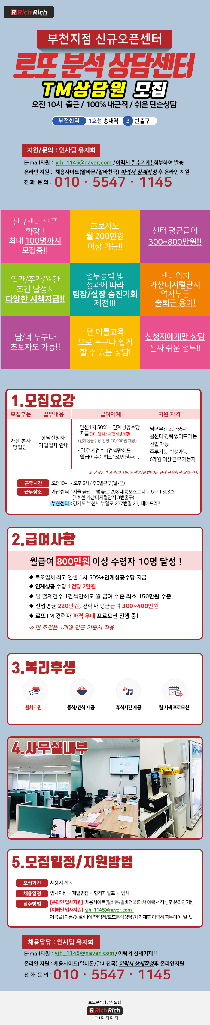 리치리치/부천센터/로또분석제공회사/단순TM상담 > 전체채용
