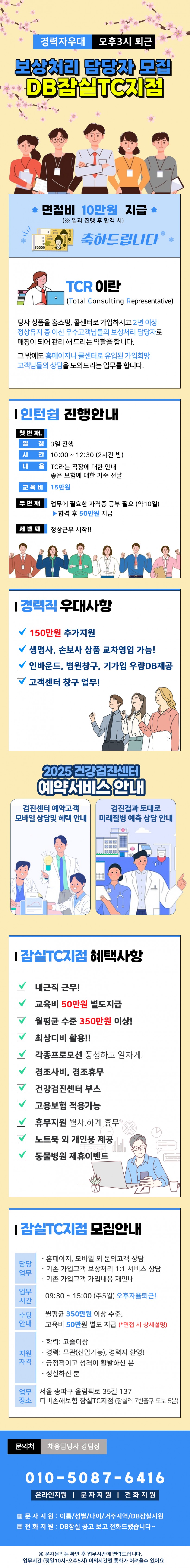 DB손보 잠실TC지점 보상처리담당자 모집 2025.04.10