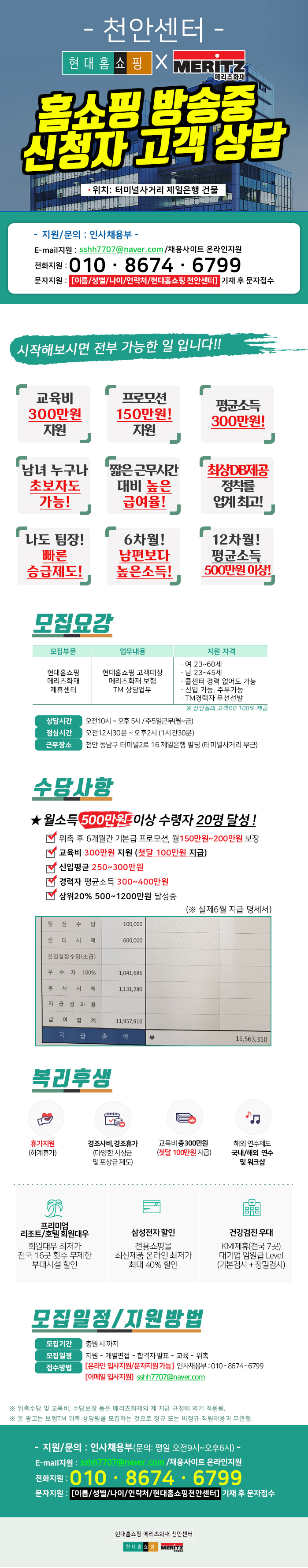 현대홈쇼핑 천안 콜센터 상담원 모집