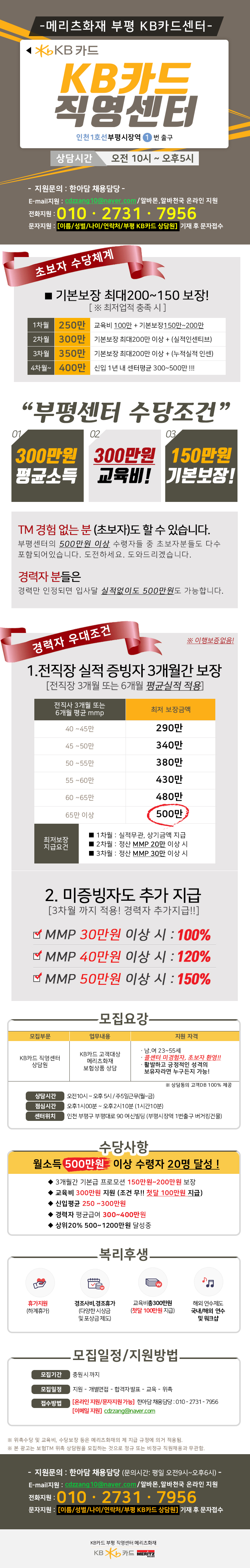 부평시장역/ KB카드 메리츠화재 직영 상담원