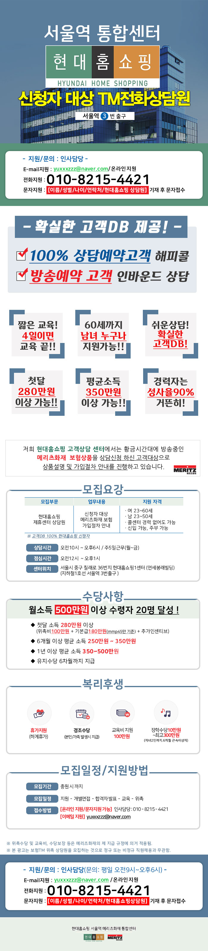 서울역 현대홈쇼핑 인바운드 상담사 모집 > 전체채용