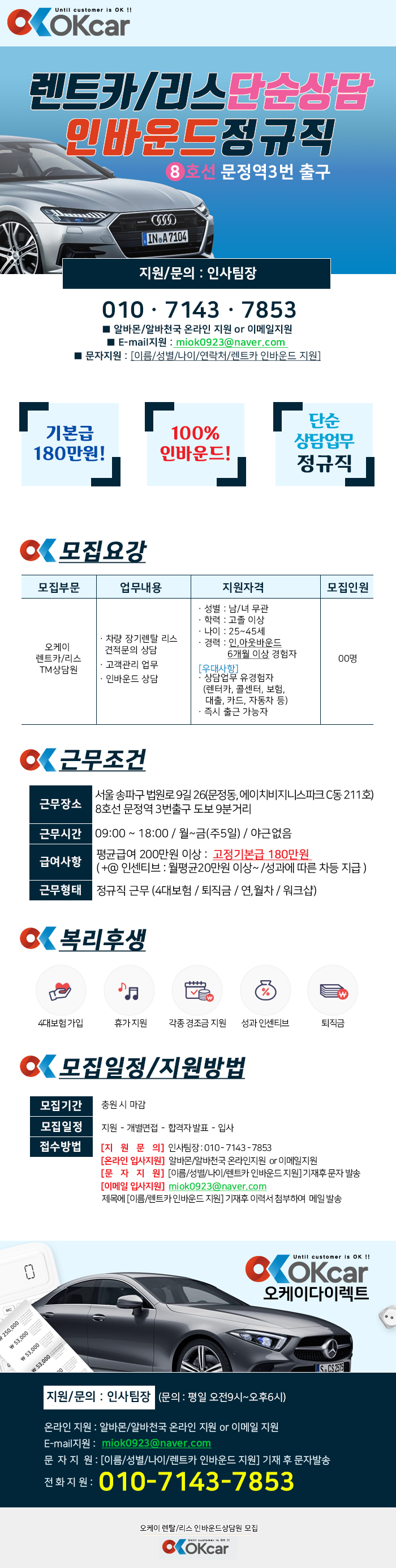오케이다이렉트 차량렌트/리스 TM상담 인바운드