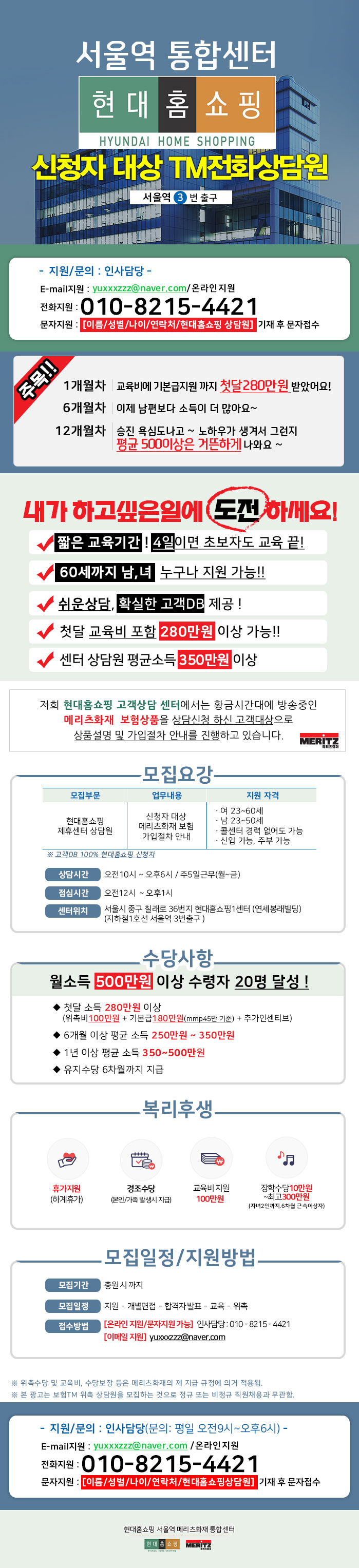 서울역 현대홈쇼핑 인바운드 상담사 모집