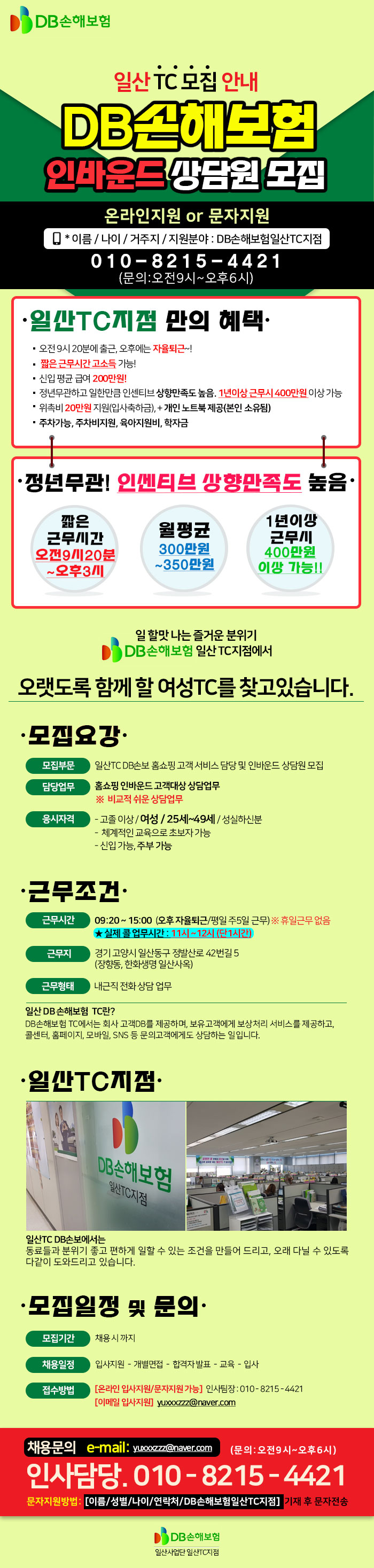 일산 DB손해보험 인바운드 상담원 모집