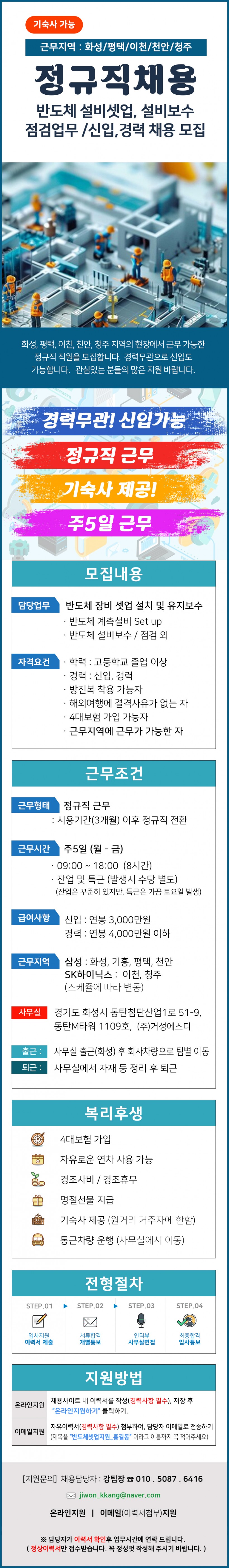 반도체셋업 및 설비보수 정규직모집 2025.03.12 수정 이전글 다음글 목록 본문 반도체셋업 및 설비보수 정규직모집 2025.03.12 수정 댓글목록 등록된 댓글이 없습니다. 이전글 다음글 목록