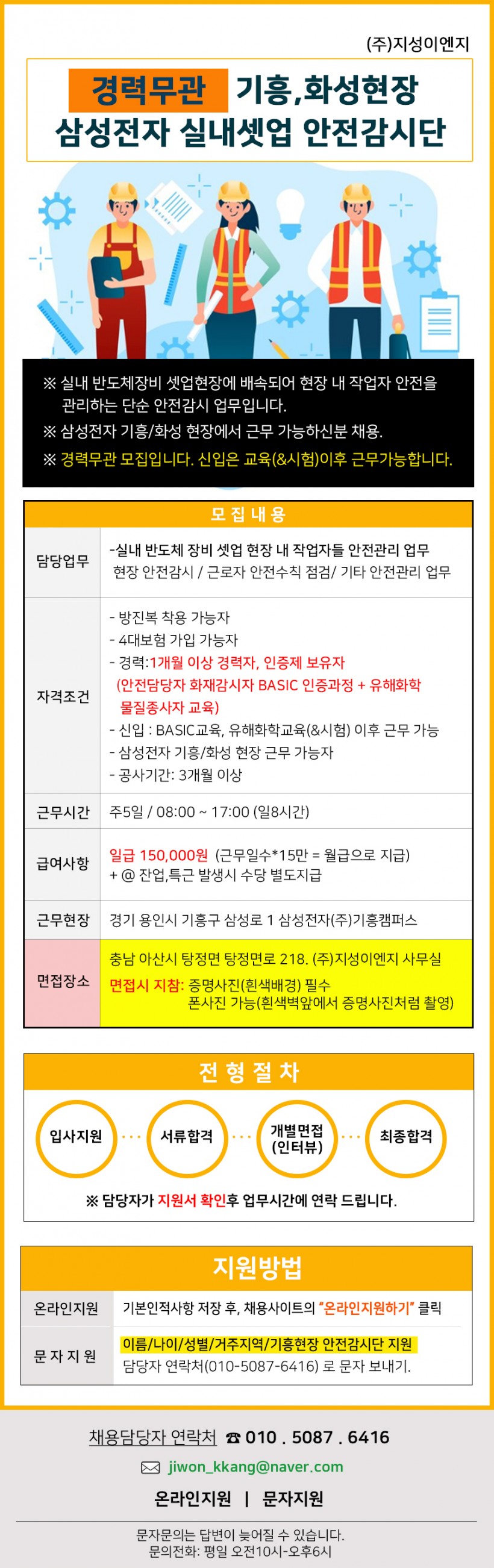기흥화성 안전감시단 (경력무관) 모집 2025.03.17 이전글 다음글 목록 본문 기흥화성 안전감시단 (경력무관) 모집 2025.03.17 댓글목록 등록된 댓글이 없습니다. 이전글 다음글 목록