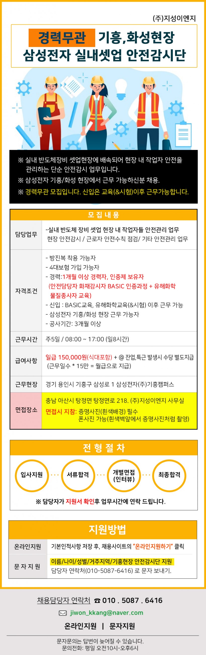 기흥화성 안전감시단 (경력무관) 모집 2025.03.17수정 이전글 다음글 목록 본문 기흥화성 안전감시단 (경력무관) 모집 2025.03.17수정 댓글목록 등록된 댓글이 없습니다. 이전글 다음글 목록