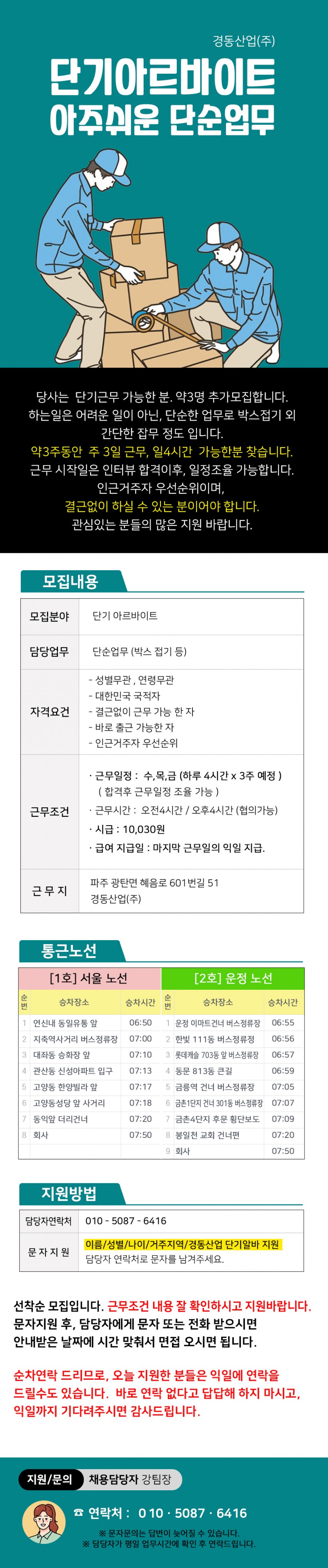 파주 경동산업 단기알바 모집 2025.03.18 (3명 추가모집) 이전글 다음글 목록 본문 파주 경동산업 단기알바 모집 2025.03.18 (3명 추가모집) 댓글목록 등록된 댓글이 없습니다. 이전글 다음글 목록