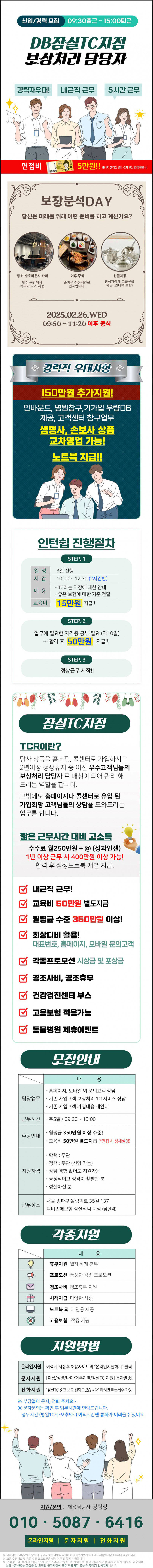 DB잠실지점 (보장분석데이 & 면접비) 2025.02.19 이전글 다음글 목록 본문 DB잠실지점 (보장분석데이 & 면접비) 2025.02.19 댓글목록 등록된 댓글이 없습니다. 이전글 다음글 목록
