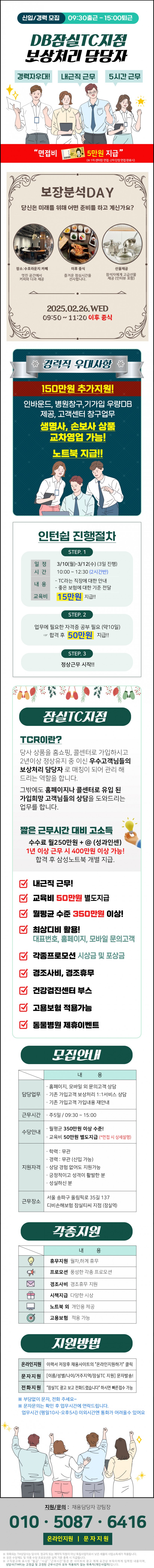 DB잠실지점 (보장분석데이 & 면접비) 2025.02.25 이전글 다음글 목록 본문 DB잠실지점 (보장분석데이 & 면접비) 2025.02.25 댓글목록 등록된 댓글이 없습니다. 이전글 다음글 목록