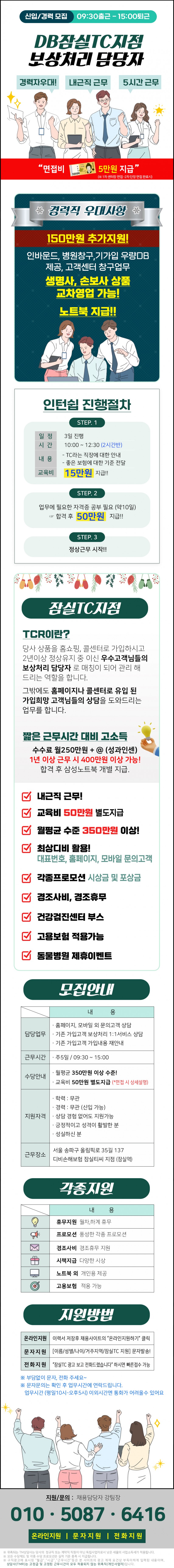 DB잠실 TC지점 (5만원 면접비지급) 25.02.10 이전글 다음글 목록 본문 DB잠실 TC지점 (5만원 면접비지급) 25.02.10 댓글목록 등록된 댓글이 없습니다. 이전글 다음글 목록