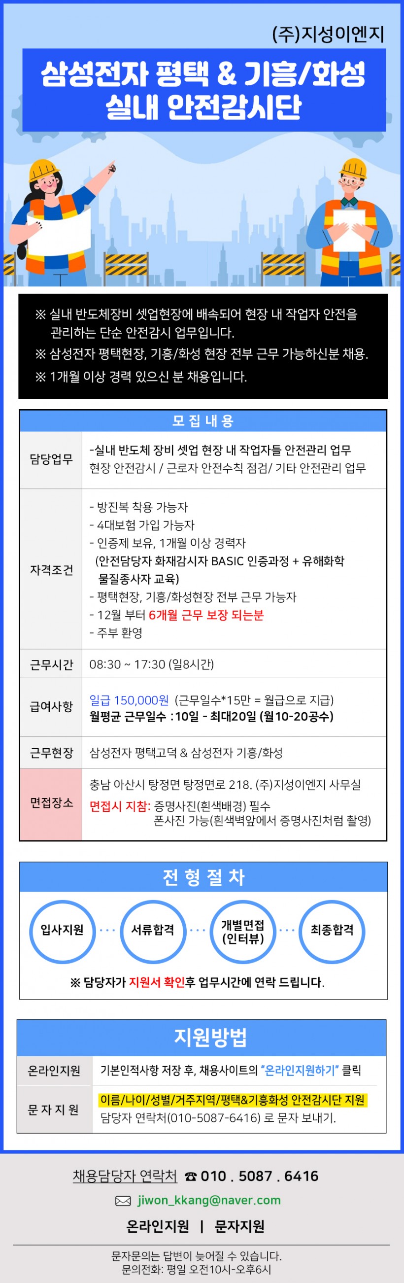 삼성전자 평택&기흥/화성 안전감시단 경력모집