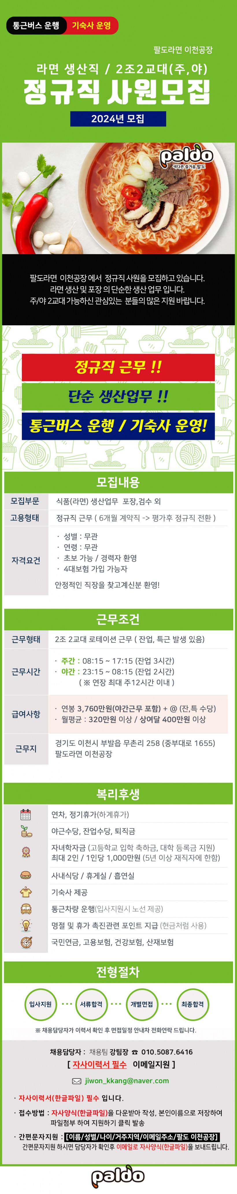 [팔도] 라면생산 이천공장 2교대 생산직 여직원 모집 이전글 다음글 목록 본문 [팔도] 라면생산 이천공장 2교대 생산직 여직원 모집 댓글목록 등록된 댓글이 없습니다. 이전글 다음글 목록