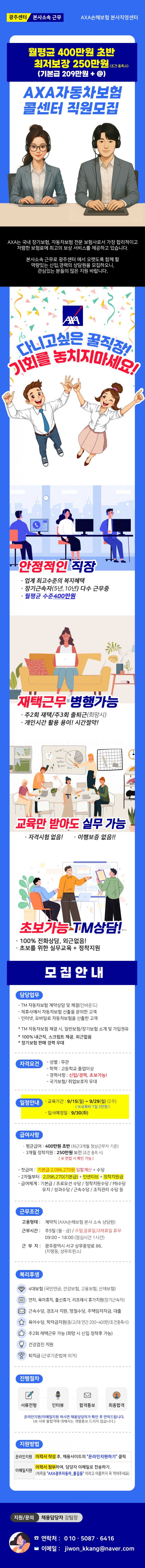 악사 자동차보험 광주센터 계약직 상담원 모집 2025.08.29 이전글 다음글 목록 본문 악사 자동차보험 광주센터 계약직 상담원 모집 2025.08.29 댓글목록 등록된 댓글이 없습니다. 이전글 다음글 목록