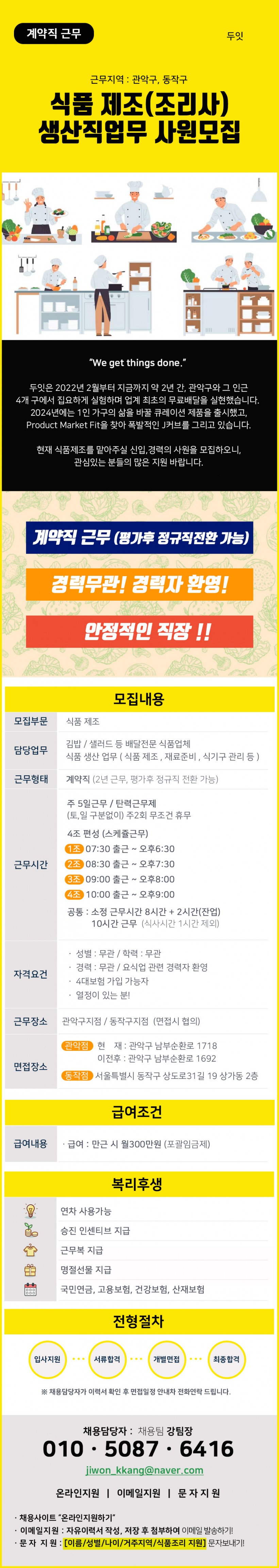 두잇 에브리데이 식품생산팀 사원 모집(강) 2025.05.21 이전글 다음글 목록 본문 두잇 에브리데이 식품생산팀 사원 모집(강) 2025.05.21 댓글목록 등록된 댓글이 없습니다. 이전글 다음글 목록