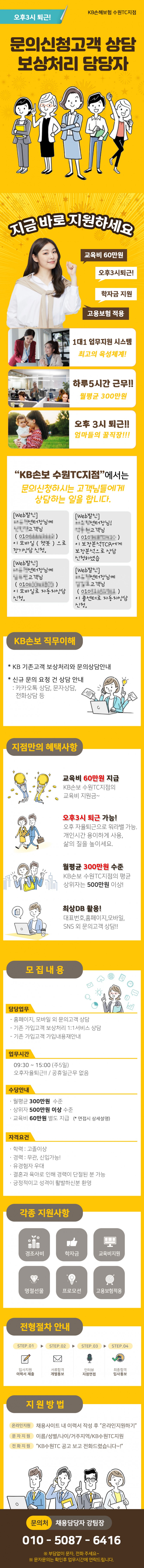 KB손보 수원TC지점 담당자 모집(강) 2025.05.23 이전글 다음글 목록 본문 KB손보 수원TC지점 담당자 모집(강) 2025.05.23 댓글목록 등록된 댓글이 없습니다. 이전글 다음글 목록