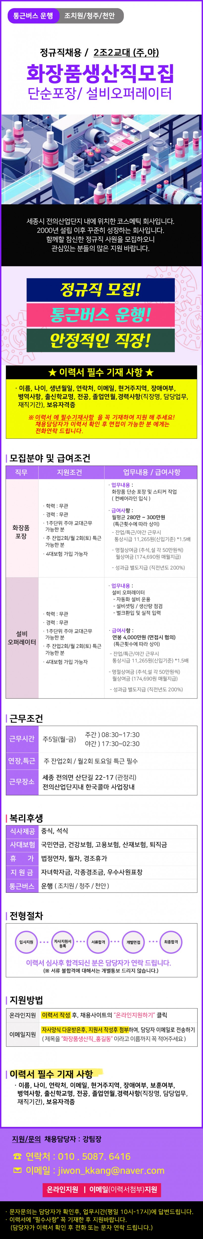 세종전의면/코스메틱 생산직 남녀모집 2025.05.08